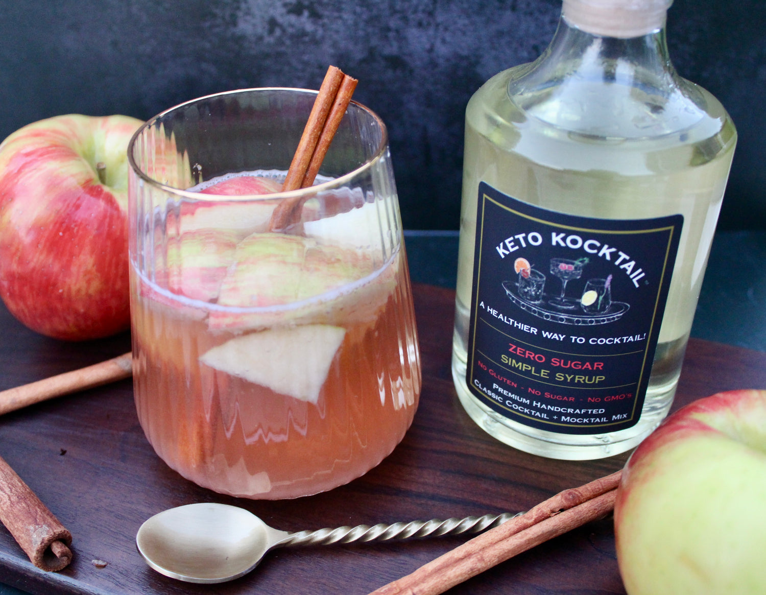 Muddle 1/2 apple, sprinkle of cinnamon and 1/2 oz of Keto Kocktail Simple Syrup in a glass. Add ice and 1 oz of bourbon. Top with Zero Sugar Sprite. Garnish with apple chunks.