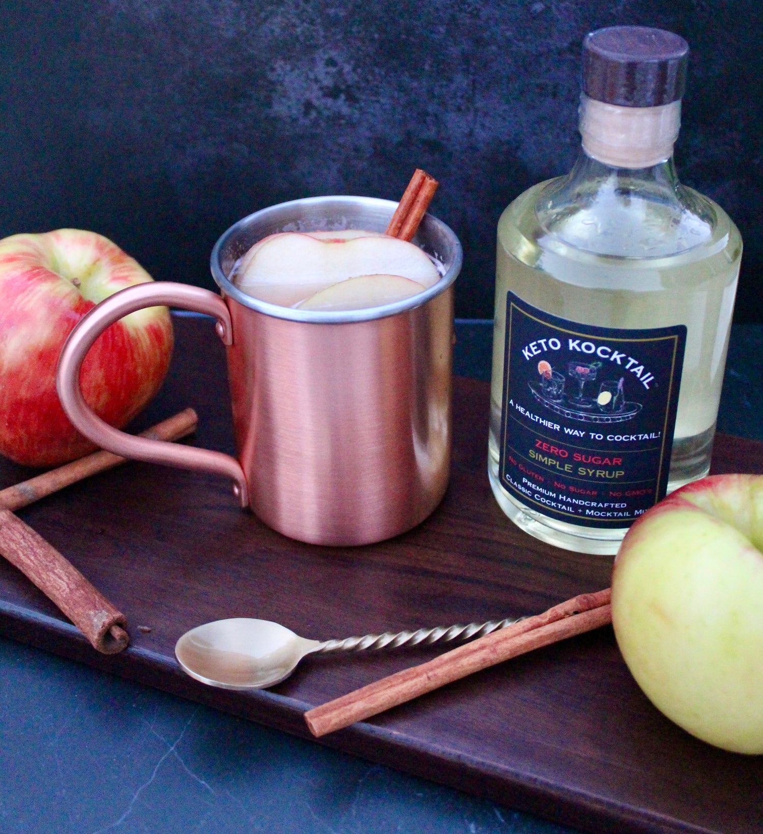 In a shaker, add 2 oz vodka, 2 oz unsweetened apple cider, 1/2 oz Keto Kocktail Zero Sugar Simple Syrup, dash of cinnamon. Shake well. Pour over ice and top with zero sugar ginger beer. Garnish with apple slices, cinnamon stick and star anise. Enjoy!